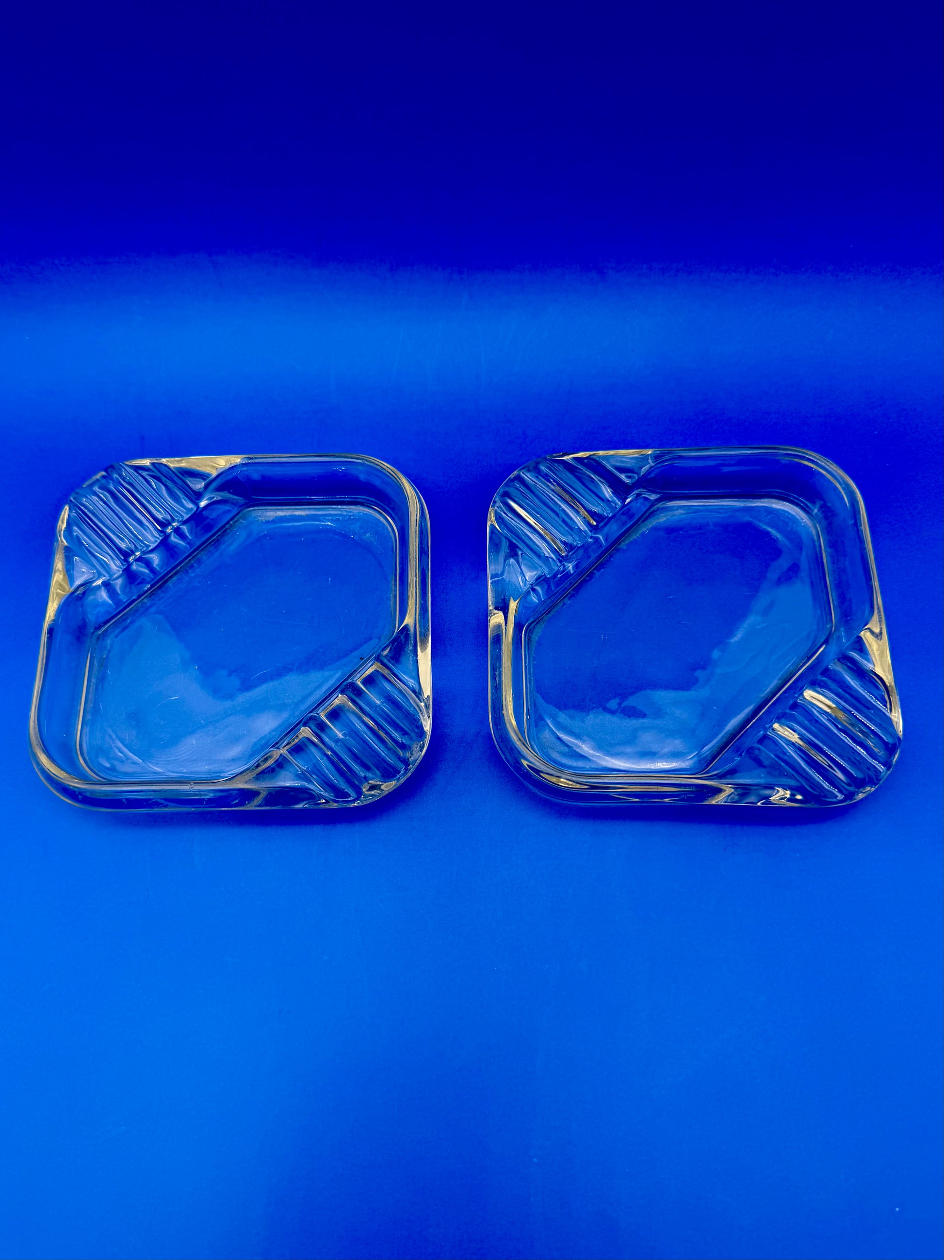 The Cynthia Set shines in solid clear glass, her square form defined by strong corners and substantial thickness. The minimalist transparency highlights her sculptural structure, allowing her to blend effortlessly into both modern and vintage inspired interiors. She feels cool and architectural, with a bold simplicity that makes a quiet statement.